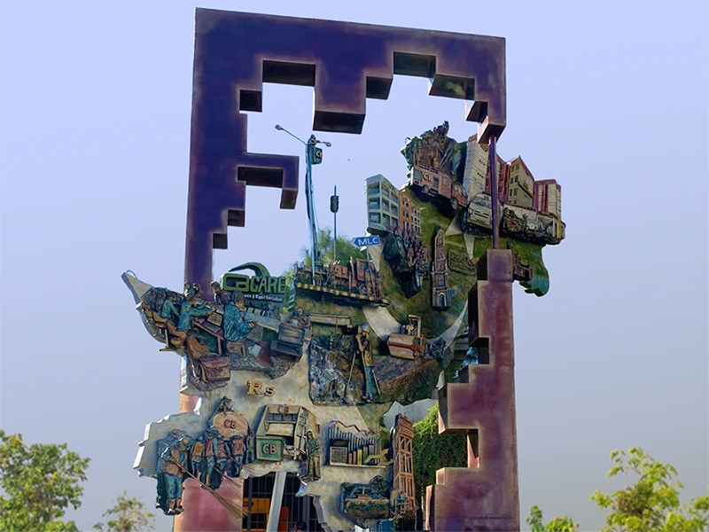 A public art landmark by Riffat Shaheen Capturing Pakistan’s heritage and civic life through sculptural storytelling in relief.