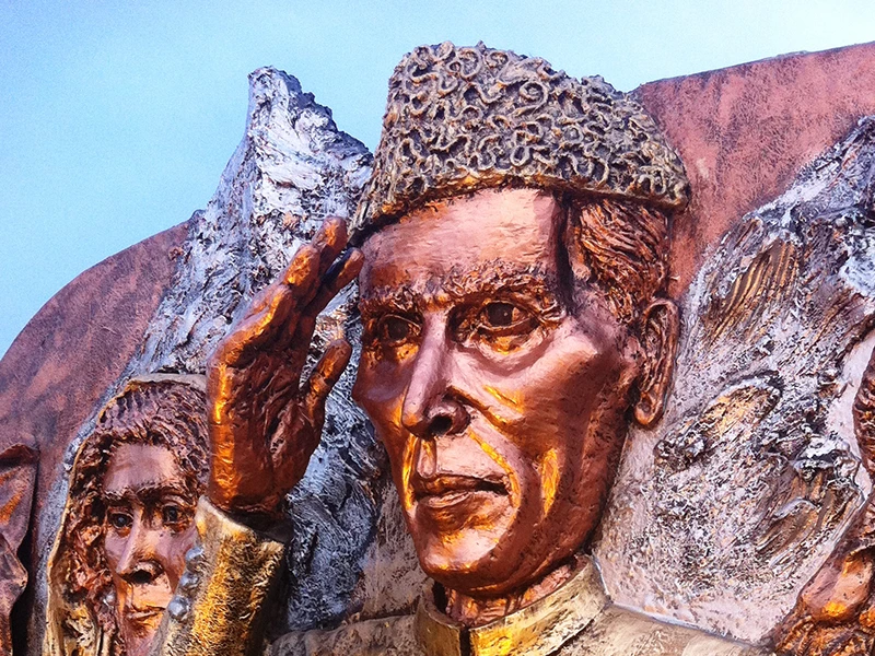 Sculptural mural tribute to Quaid e Azam. Blends texture and light to honour vision, resolve, and national pride.